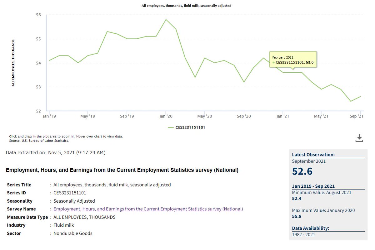 CNN's got the facts on milk prices, and today's jobs report confirms that employment in the "fluid milk" industry has kept falling throughout the pandemic.