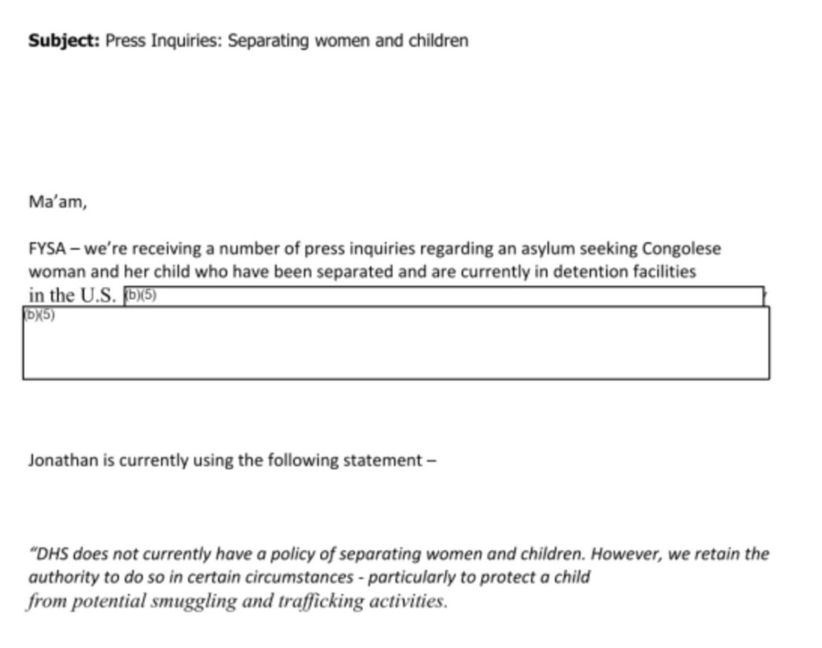 In March 2018, Wolf emailed Nielsen: “Ma’am, FYSA – we’re receiving a number of press inquiries regarding an asylum seeking Congolese woman and her child who have been separated." Nielsen replied that this was "one of the stories I asked about last week."