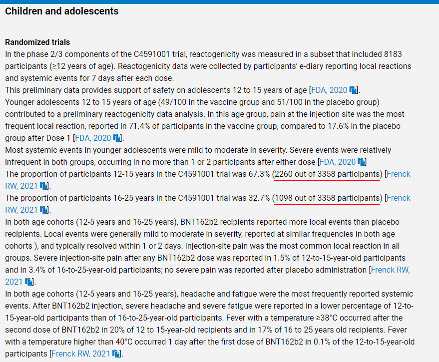 2/ Pero a no horrorizarse, aunque ahora dudo. ¿Es solo el caso de Sinopharm, verdad? Bueno, no. Es un poco técnico pero veamos Pfizer. Es importante notar que el RCT para menores de 16 años consta de 2260 adolescentes. ¿Es esto suficiente?