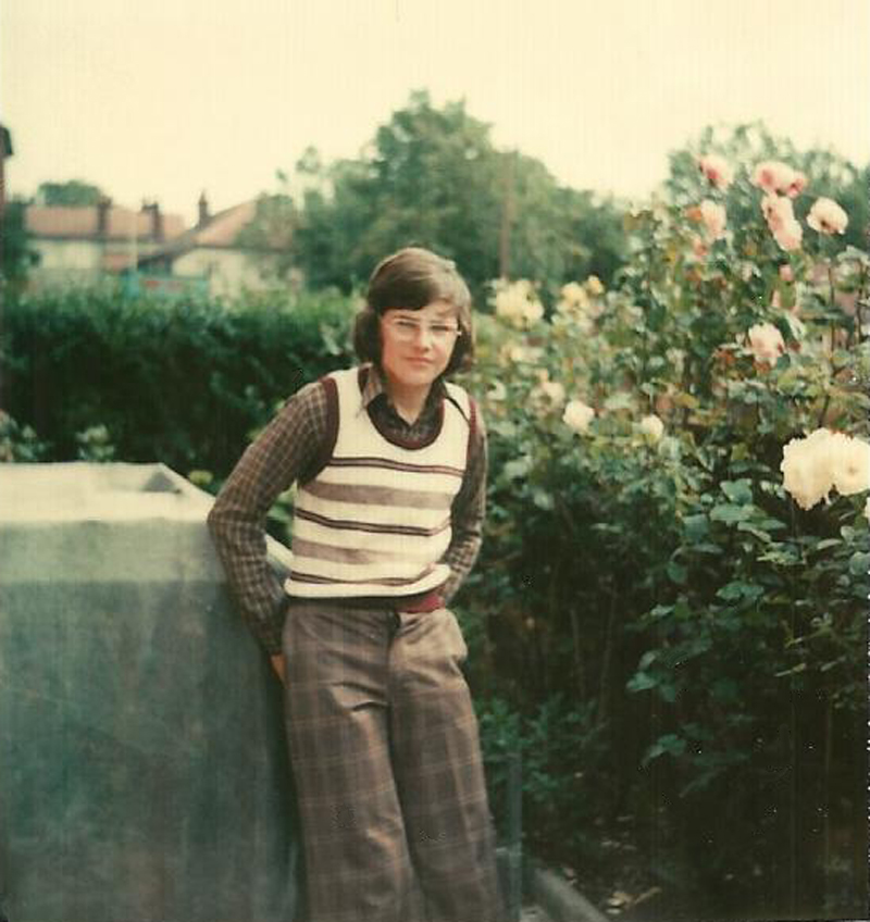 A seventies fashion icon, possibly en route to a Bay City Rollers concert.