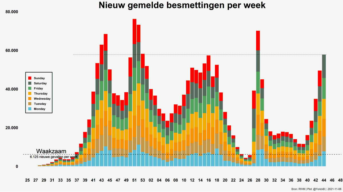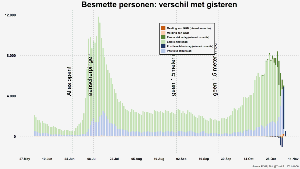 - nieuwe gevallen (laatste 2 dagen worden nog aangevuld)