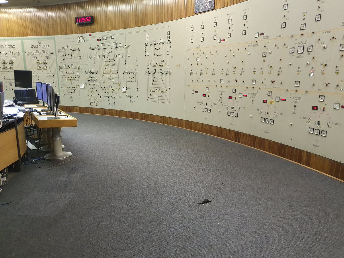 That's sent out into the transmission network. This wood-paneled control room plays a part
