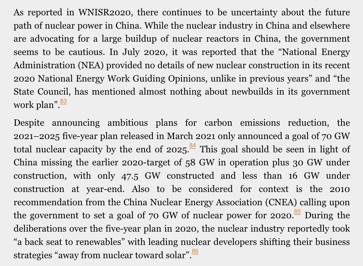5/7 - Cette déclaration illustre surtout l'écart entre les désirs de l'industrie nucléaire chinoise et la réalité, qui est une tendance à la baisse et à la non atteinte des objectifs en matière nucléaire - voir le China Focus de l’excellent @nuclearreport worldnuclearreport.org/The-World-Nucl…
