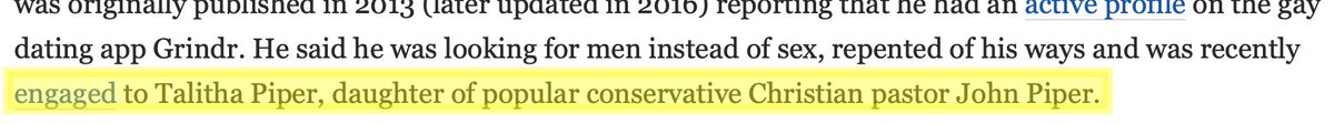 Even more telling, though, is his marriage into the Piper family. John Piper is a long-time leader in authoritarian fundamentalism, and drafted the 1987 Danvers Statement that first spelled out "complimentarianism" — the Separate But Equal of fundamentalist gender doctrine.
