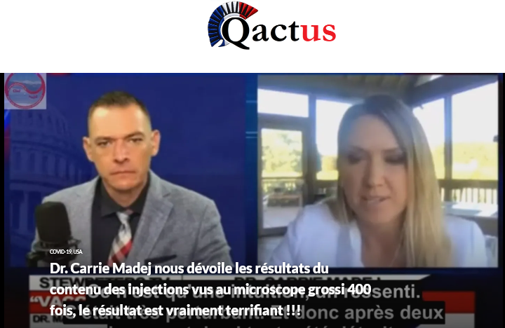 7/n : Tout d’abord, elle parle dans cette vidéo d’une certaine Dr Carrie Madej. On verra plus tard qui est cette personne. Mais tout d’abord, il a fallu qu’ait eu connaissance de l’info. Parce qu’un truc pareil, faut savoir l’inventer, ou à défaut savoir où trouver l’info.