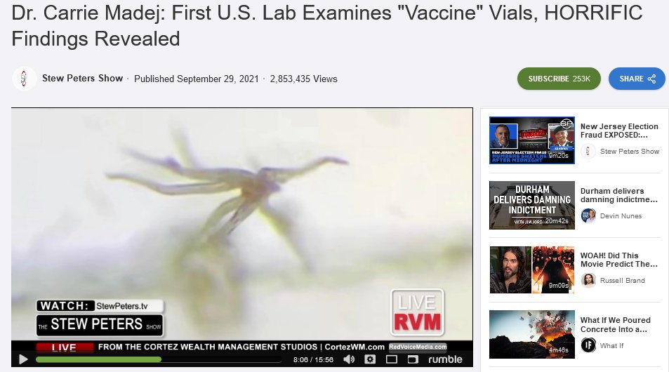 11/n : En recherchant les posts contenant « Hydra Vulgaris » en mots clefs, on trouve enfin le lien de la vidéo originale, publiée sur Rumble le 29 septembre dans la chaîne d’obédience QAnon « Stew Peter Show ». Vidéo qui cumule aujourd’hui 2'850 000 vues.