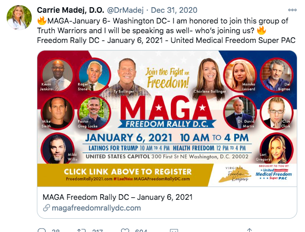 16/n : Si proche de MAGA qu’elle a été invitée lors de leur fameux Rally du 6 janvier. Eh oui, elle était à Washington lors de l’émeute qui failit aboutir à la prise du Capitole… Et elle a pris parole aux côtés de Trump ou l'Alex Jones... vice.com/en/article/88a…