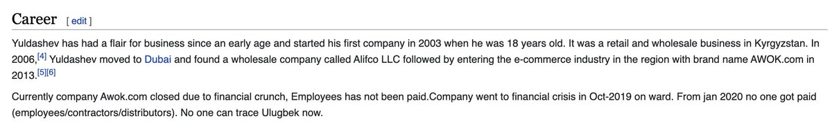 4. The resignation of a Board member who runs the VC practice at their co-lead investor 5. This unflattering Wikipedia edit from what looks to be a disgruntled former employee, en.wikipedia.org/wiki/Ulugbek_Y… (never a good idea to use an easily identifiable username)