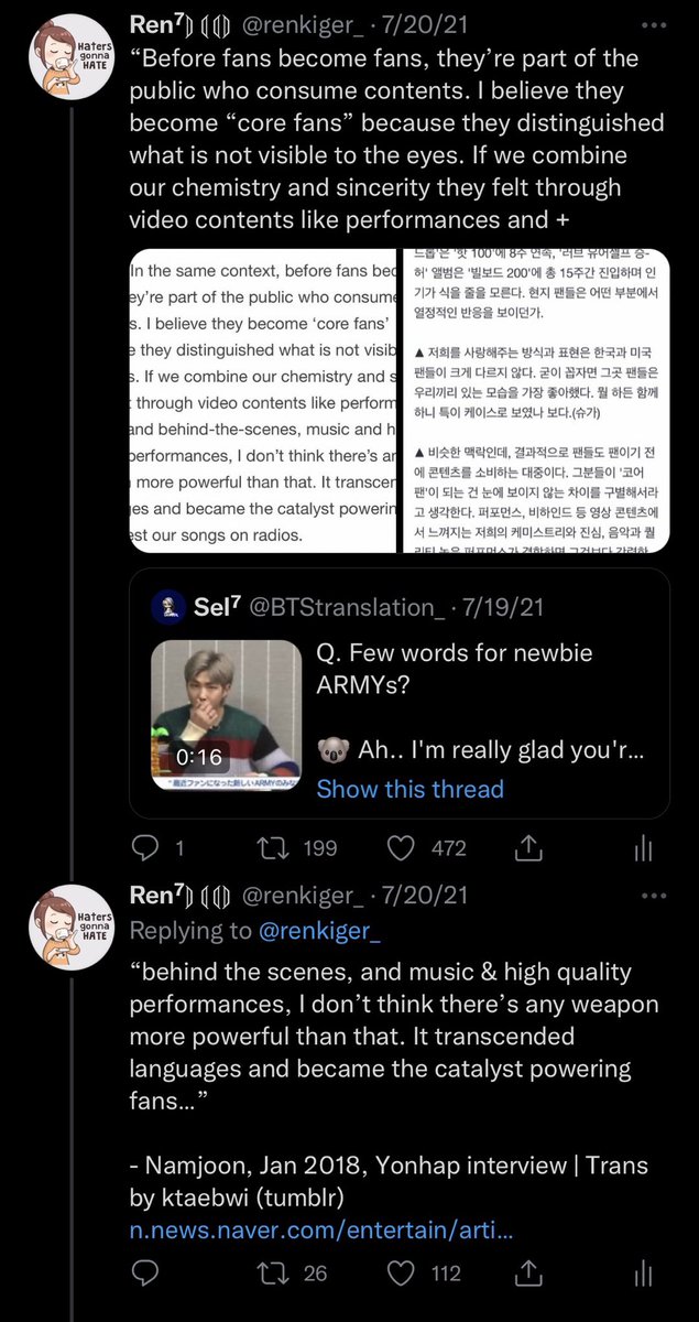 There’s a point that turns casual consumers/fans into core fans (ARMY). To BTS, their lyrics, & understanding them & their art, has always been part of it+