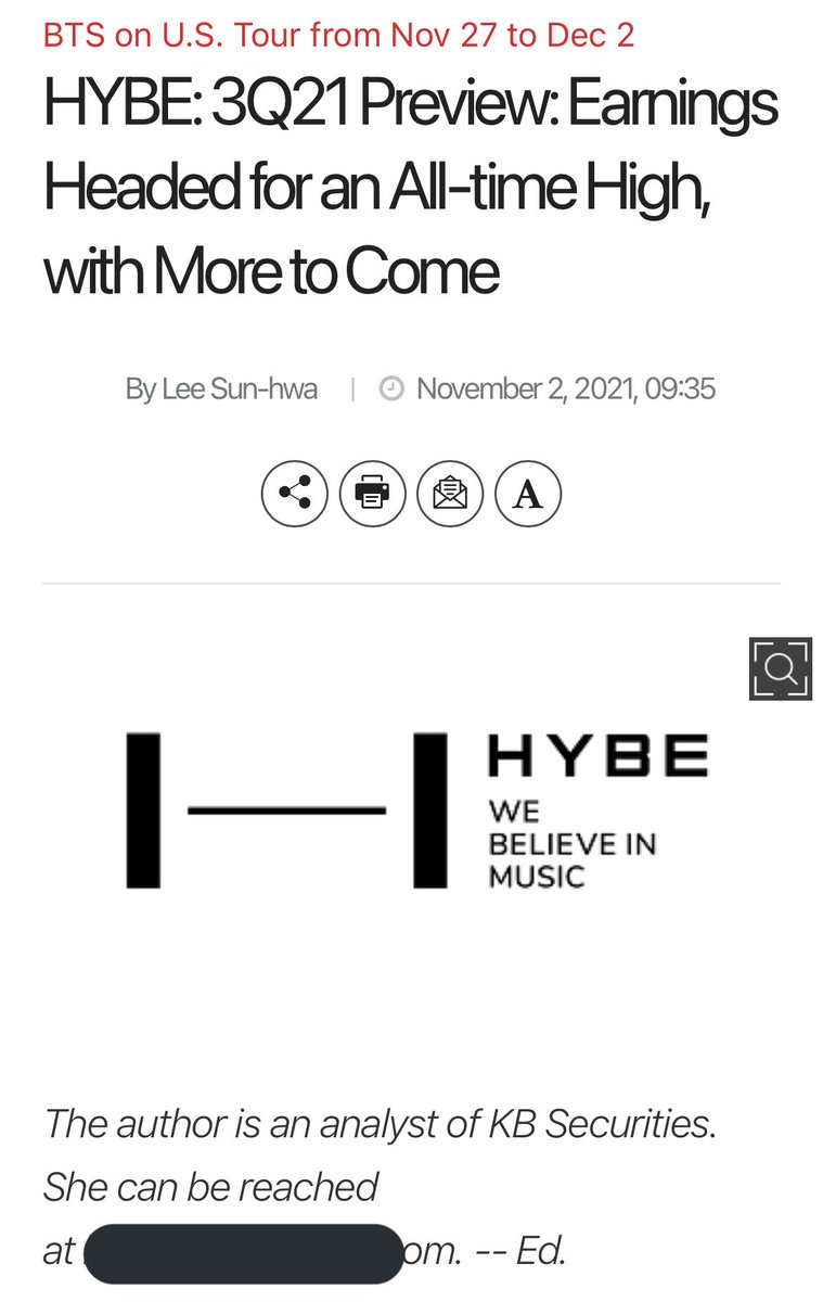 KB Securities’ forecast re HYBE 3Q21 and outlook (we’ll see in a day or so how the figures match when earnings reports are released)