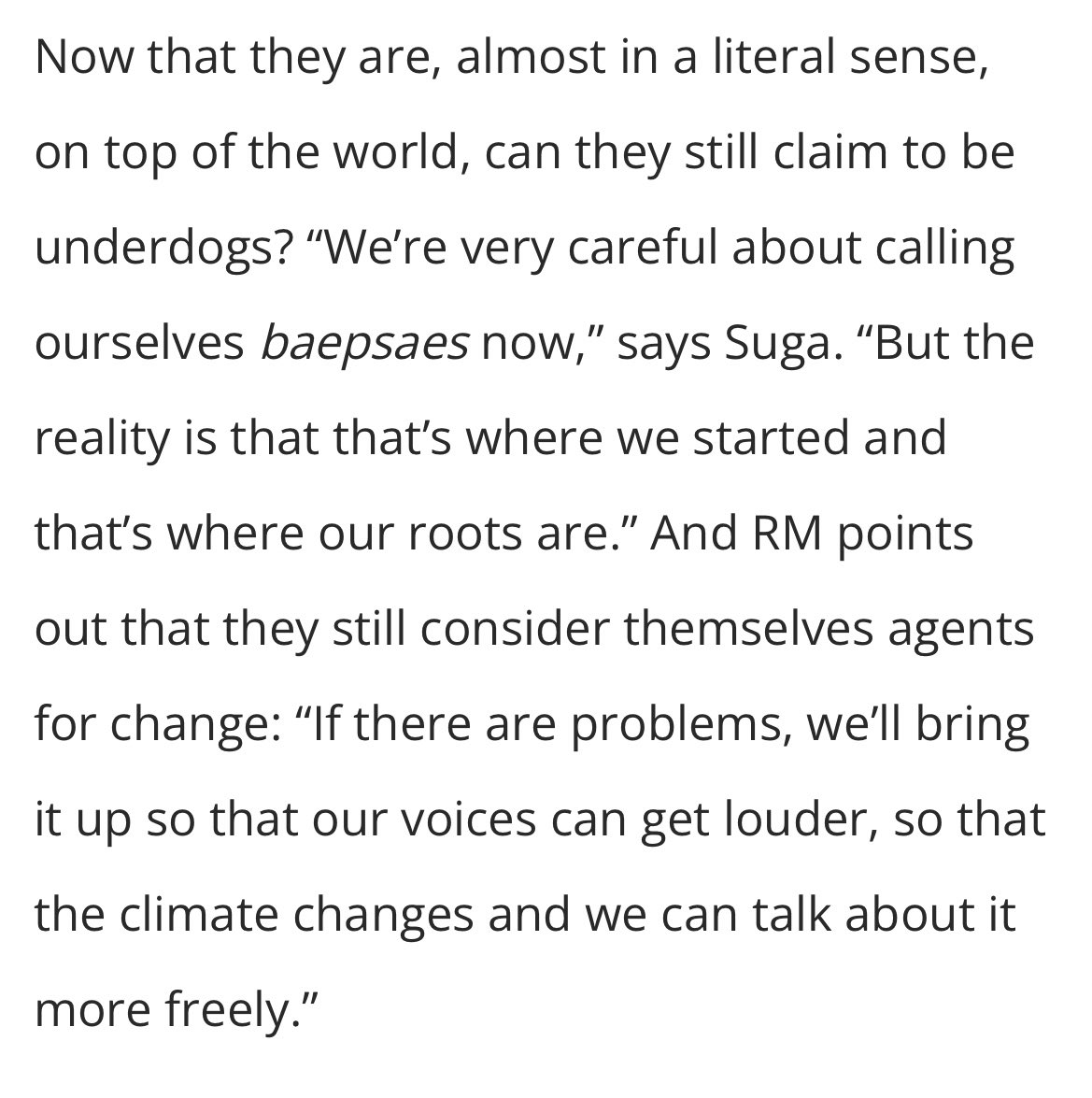 BTS have been careful since late 2017 of their influence and of thinking/referring to themselves as underdogs, but that doesn’t erase their/our history.