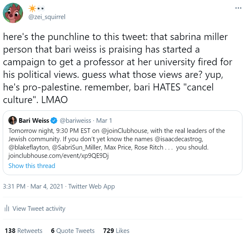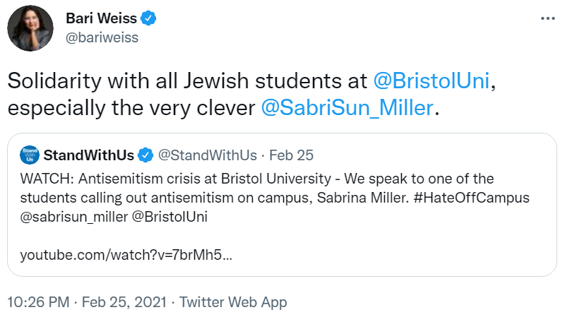 bari weiss has made a very lucrative grift career branding herself a free speech warrior focusing on academic freedom. at the same time she keeps getting professors she doesn't like fired, and praising those who start campaigns to fire them. david miller is just the latest case: