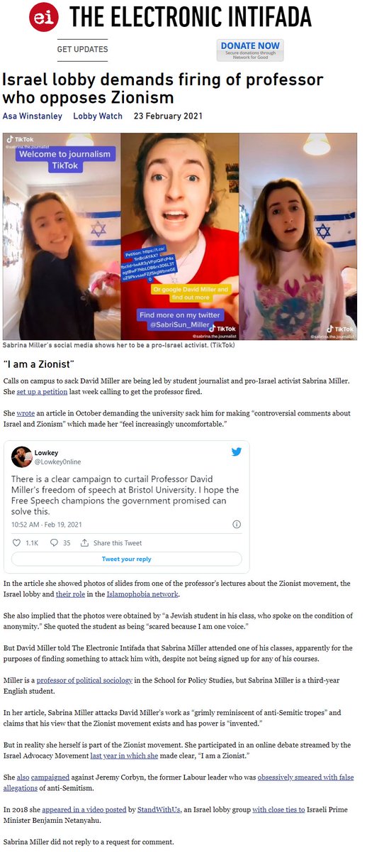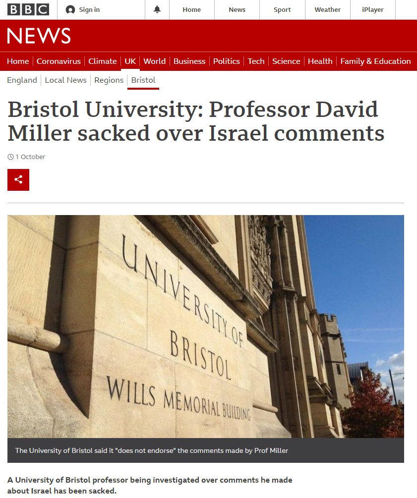 the firing of david miller after he was cleared by the university's own investigation (itself a grotesque absurdity) is without doubt the most significant infringement of academic freedom in the US/UK of the past decade. dozens of members of parliament demanded his firing