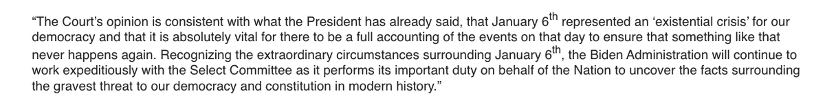JUST IN: The White House has responded to Judge Chutkan's ruling, vowing to continue to "work expeditiously with the Select Committee" to get an accounting of Jan. 6.