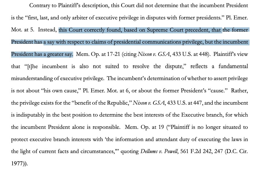 BREAKING: The DC Circuit Court of Appeals has granted a brief hold on the Trump executive privilege decision, setting a schedule that includes arguments on Nov. 30.