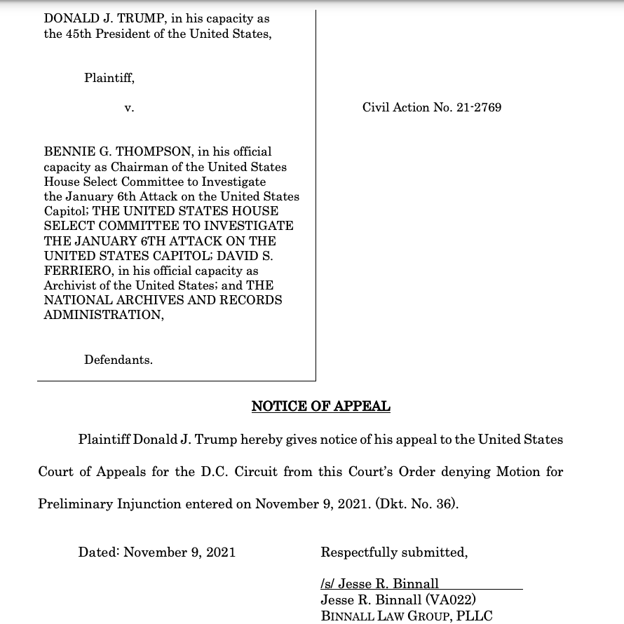 NARA has already replied, saying Trump's demand for a stay is meritless.