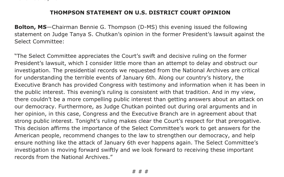BREAKING Judge Tanya Chutkan has rejected Donald Trump's effort to block the Jan. 6 committee from accessing his White House records, determining that Biden's decision to release them is more significant.