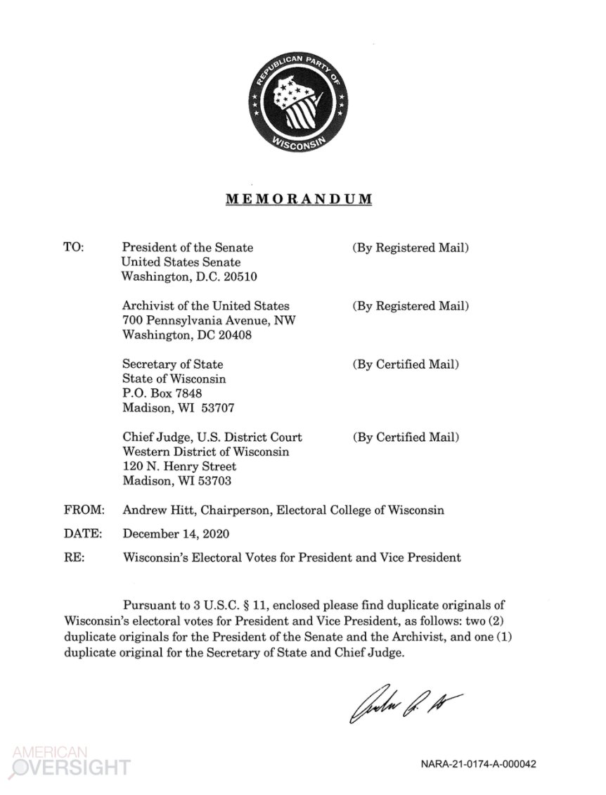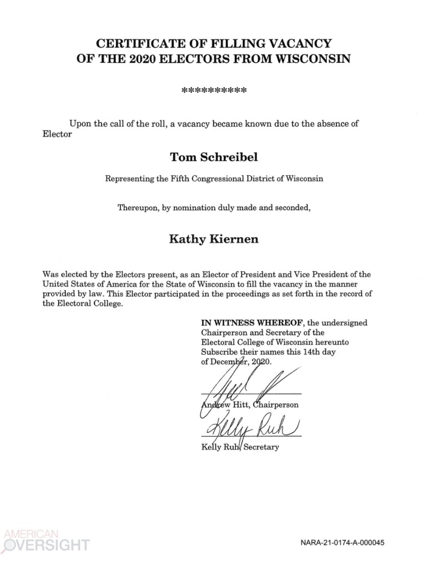 Spindell was one of 10 fake pro-Trump “electors” who added their names to a phony electoral vote certificate that was submitted to Congress in the midst of an effort by Trump allies to overturn the election. We obtained a copy of the fake certificate. americanoversight.org/american-overs…