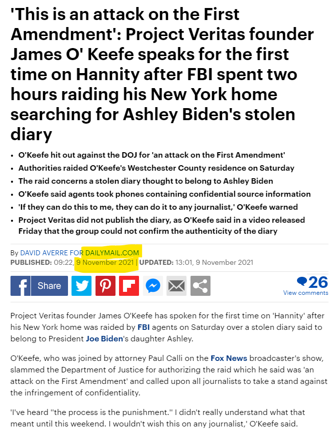Worryingly, the UK Daily Mail gave the interview & O'Keefe a sympathetic framing as some kind of "attack" on the First Amendment & journalism more widely.