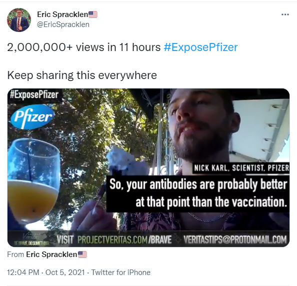 Project Veritas released a deceptive video created to malign Pfizer employees & the Pfizer #COVID19 vaccine.
