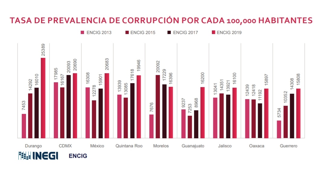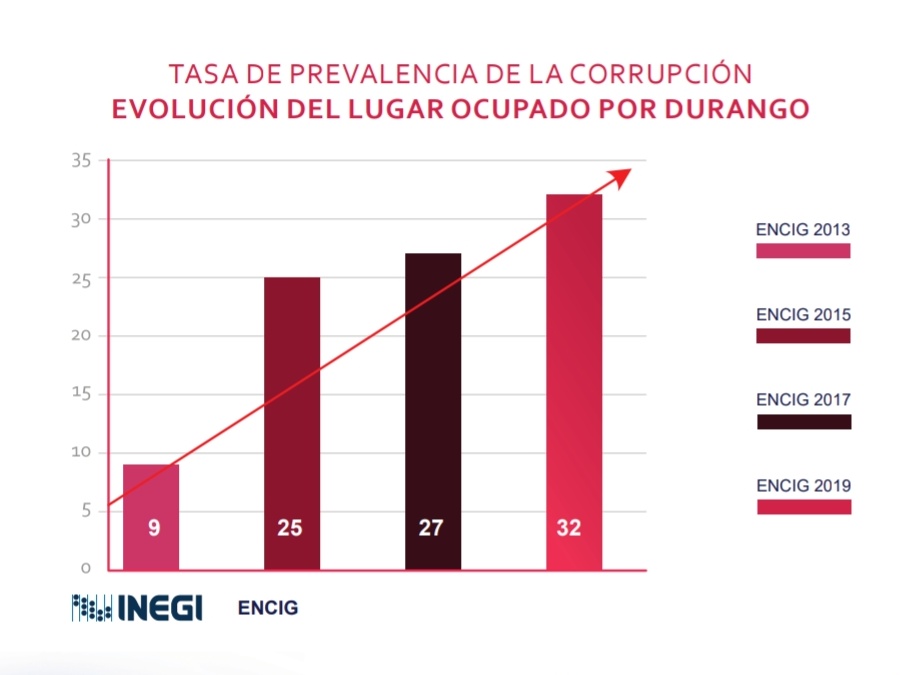 Gubernamental (ENCIG) 2019, que el @INEGI_INFORMA hace cada dos años, en la que #Durango tuvo la Tasa de Prevalencia de Corrupción más alta de las
