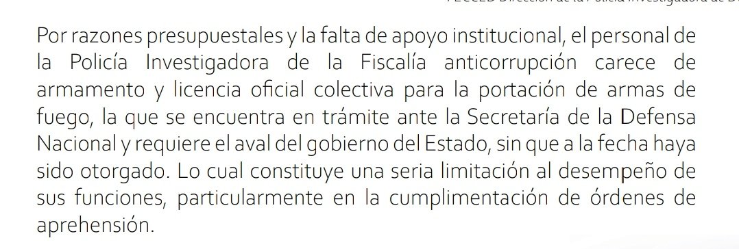 Otra omisión inexplicable del @gobdgo que se ventiló en el informe radica en el desdén por avalar el permiso de uso de armamento por parte de los policías y agentes investigadores especializados, pese a la persecución de delitos de corrupción que pueden ser de alto riesgo.