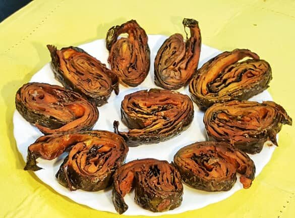 Most of know it as Baingan ka Bharta, but you can already see our Bharta looks completely different. Once the eggplant is roasted, its not cooked further, not much spices, only onions, green chilli & coriander. Best served with chapati or Bhakri