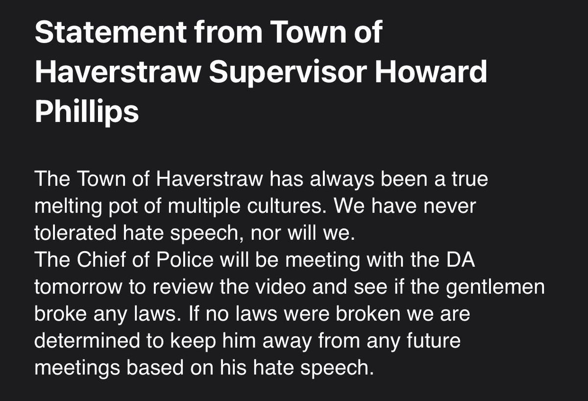 BREAKING! Town of Haverstraw, NY Supervisor says that “the Chief of Police will be meeting with the DA tomorrow to review the video and see if the gentleman broke any laws.”