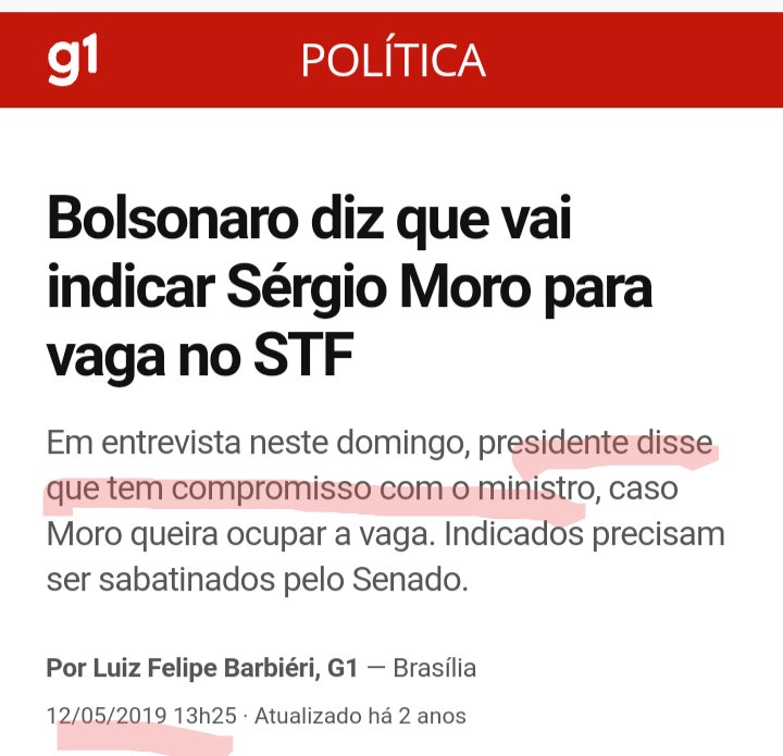 Em 2019, Bolsonaro revelou que tinha esse compromisso com o ex-juiz. Pq ele não desmentiu o Presidente à época?