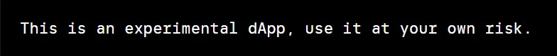 Hic Et Nunc 推出後,用戶按一下右上角的功能表按鈕時,網站底部便會出現一句話:This is an experimental dApp, use it at your own risk( “這是一個實驗性 dApp,使用者風險自負”。)