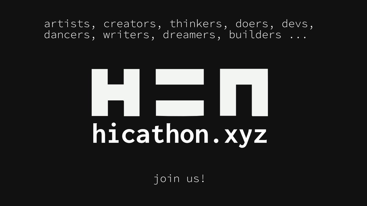 5月下旬,Hic Et Nunc 得到社區藝術家、收藏家和 Tezos 基金會的捐贈支持,以社區驅動的形式共同舉辦了第一次生態 Hackathon:hicathon,來自全球70多個國家(或地區)的參與者撰寫了宣言,並對於合約審計、生態項目開發和 DAO 相關的問題進行了討論,希望以自組織的形式進一步推薦實驗;