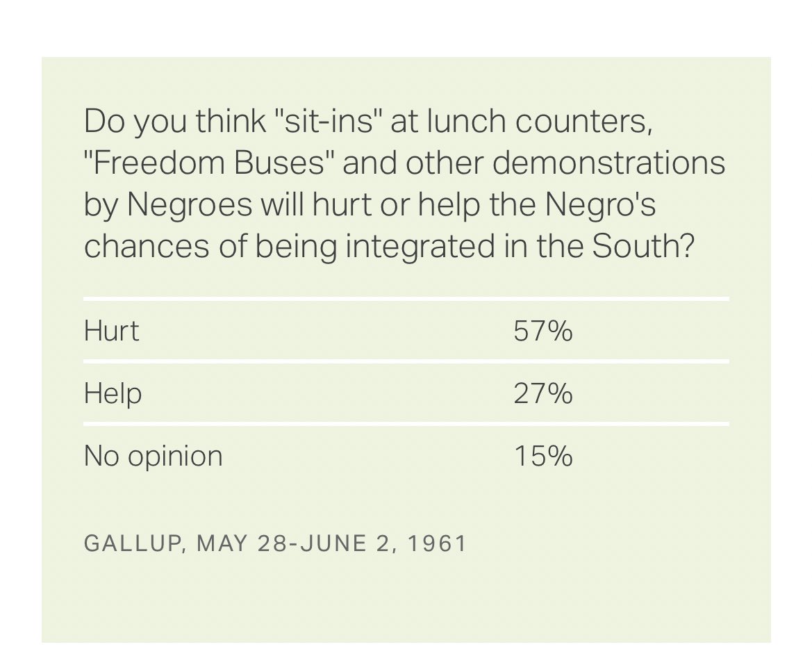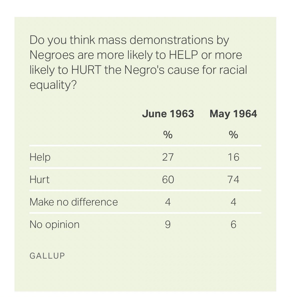 Why do people think theyre clever pointing out longterm radical projects are presently unpopular. At the time of his killing MLK had a 75% disapproval rating, including ~50% among AA’s. In 1859 the NYT condemned militant abolitionists & called John Brown “a wild & absurd freak”
