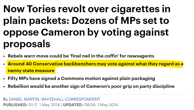 The Free Enterprise Group published a report, ‘The Business of Small Enterprise’. In the report the Group recommended that the Government “drop proposals for plain packaging”. The Government announced it would reconsider plain packaging in November 2013.