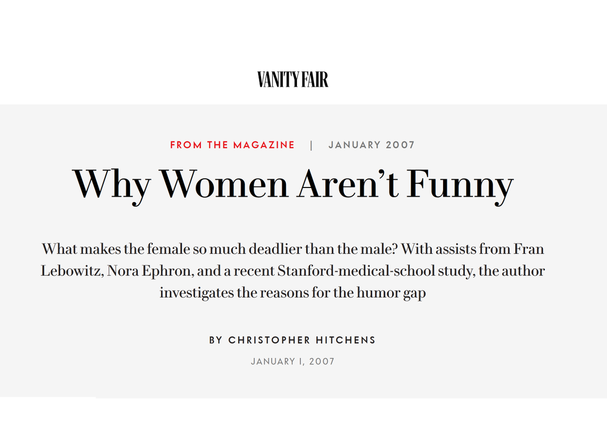 Warum Frauen nicht lustig sind: Diesen Titel wagte einst Christopher Hitchens für einen Essay. Die Empörung über den Text und das alte Vorurteil dahinter wird ihn nicht überrascht haben. Allerdings: Die Daten sprechen eher für Hitchens. Empörend? Erst lesen, dann entscheiden |1