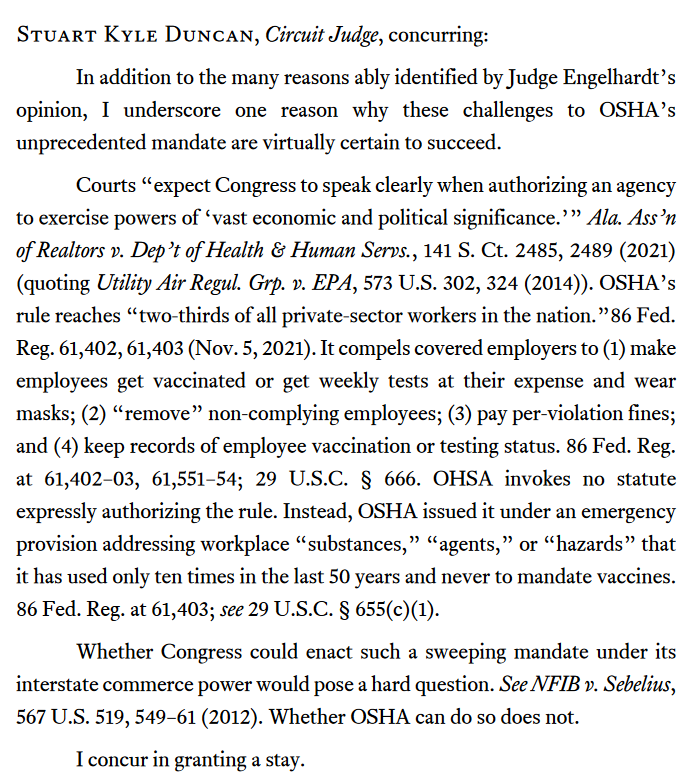 Fifth Circuit reaffirms stay of OSHA vaccine mandate, says the agency may "take no steps to implement or enforce the Mandate until further court order." dl.airtable.com/.attachments/d…
