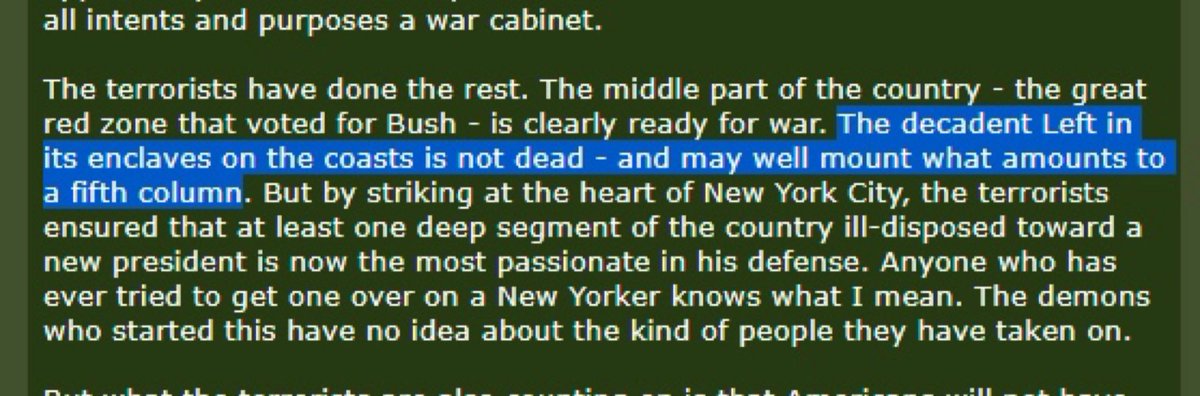 Here’s Andrew Sullivan’s post 9/11 column calling the American left a “fifth column.” It’s conveniently difficult to find. 🤔web.archive.org/web/2002041623…