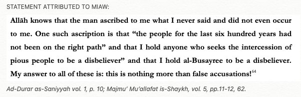 Such hypocrisy: MIAW had claimed that "Oh I never said the Ummah was upon misguidance for 600 years!!" Sure. Then how does this movement claim that the people of the past were somehow mushriks but excused? What MIAW denies is exactly what is implied by Salafi-Wahhabis today.