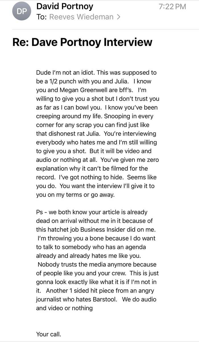 They are essentially threatening them with “do you want to be perceived as supporting a rapist”. The evidence to say Im a rapist is their own reporting that included no evidence or facts to back their claim. Written by a reporter who deleted all her tweets prior to publication