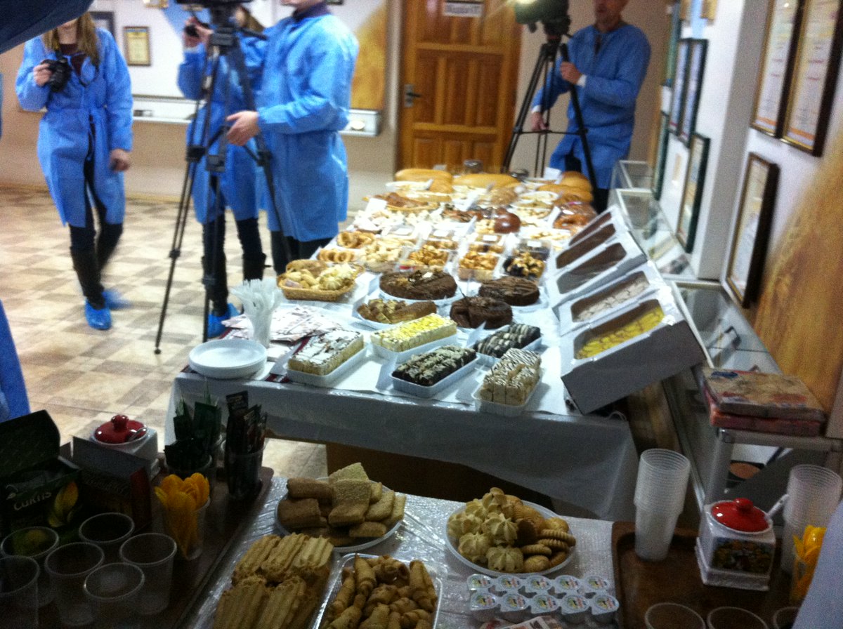 Однажды меня отправили на хлебзавод снимать сюжет о его ребрендинге или типа того. И после экскурсии по традиции всех журналистов ждал фуршет. В тот день я ела только кусок хлеба с вареньем, так что когда я увидела тортики, пирожки и пирожные у меня потекли слюнки.