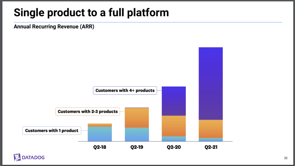 Datadog earns customer trust, then expands the number of products customers buy from them: