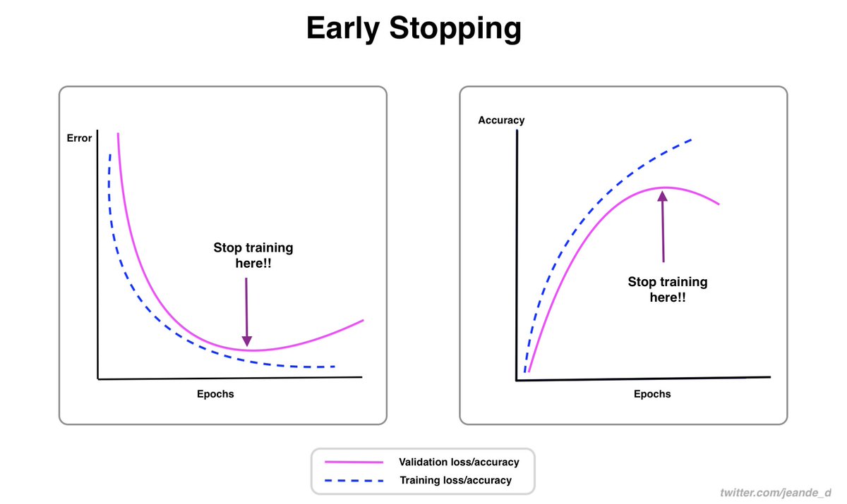 A thread on the idea behind early stopping, why it works, and why you should always use it...🧵