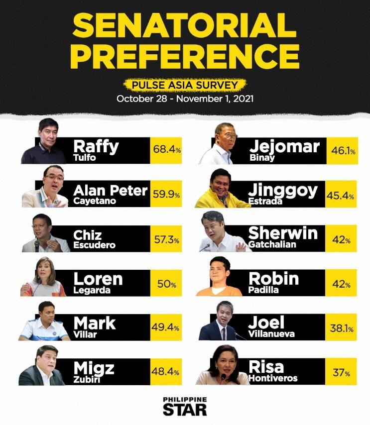 The latest Senatorial surveys show 8 candidates in magic 12 who could be considered as allies of the President.