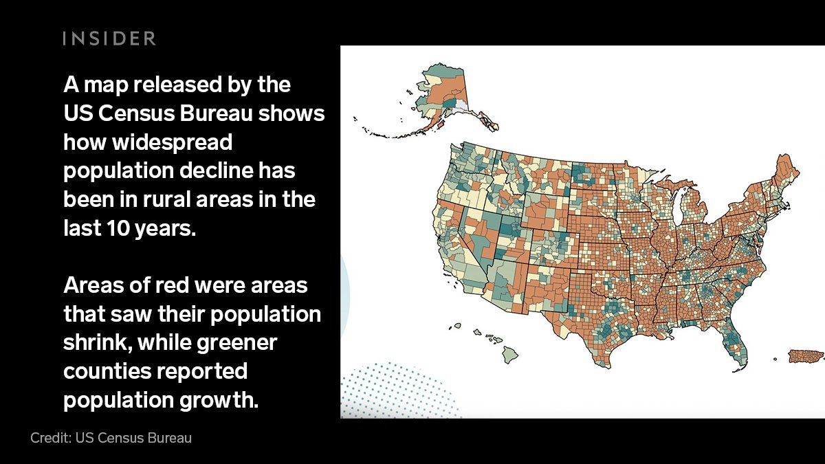 Most of Middle America saw a decrease in population growth over the last decade, according to Census results. Large sections of South Dakota, Nebraska, Kansas, Missouri, and Mississippi have seen declines in their population since 2010, the data shows.