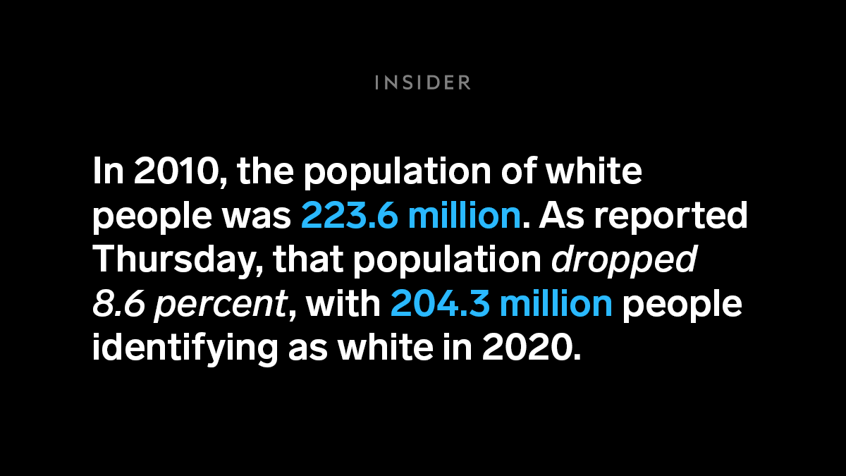 For the first time ever, America’s non-Hispanic white population declined, per Census data. The number of people identifying as white dropped below 60%.