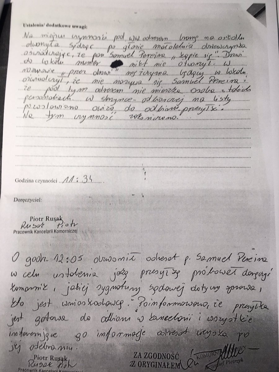 Pomimo ochoczych deklaracji, Samuel skutecznie odwlekał moment konfrontacji, między innymi w taki sposób, że ukrywał się w łazience. Ale przełamaliśmy te lody i w końcu mamy pierwszy termin rozprawy na 25 marca 2022! (Pozew z paź. 2019).