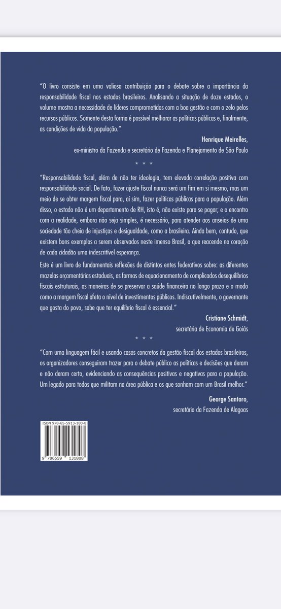 É com muita satisfação que anuncio que estamos lançando, este mês, o livro "O destino dos estados brasileiros: liderança, responsabilidade fiscal e políticas públicas"