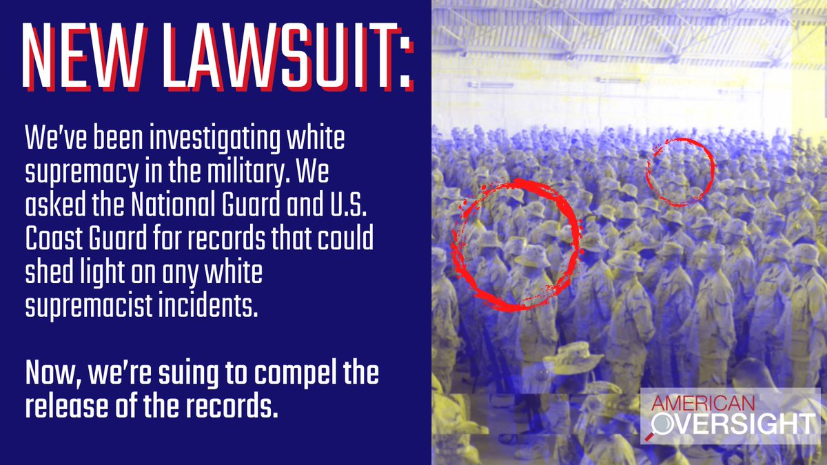 NEW LAWSUIT: We’ve been investigating white supremacy in the military. We asked the National Guard and U.S. Coast Guard for records that could shed light on any white supremacist incidents. Now, we’re suing to compel the release of the records.