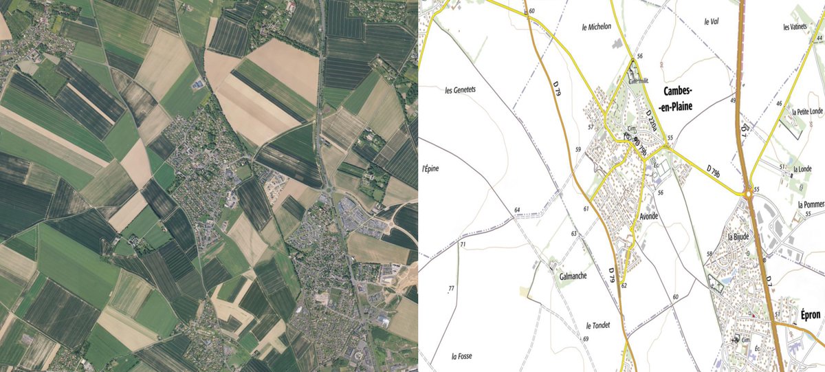 Here is an overlay of the two which makes clear the urban sprawl from Cambes but little changes around Galmanche. You can walk from Cambes to Galmanche along a farm track which has public access.