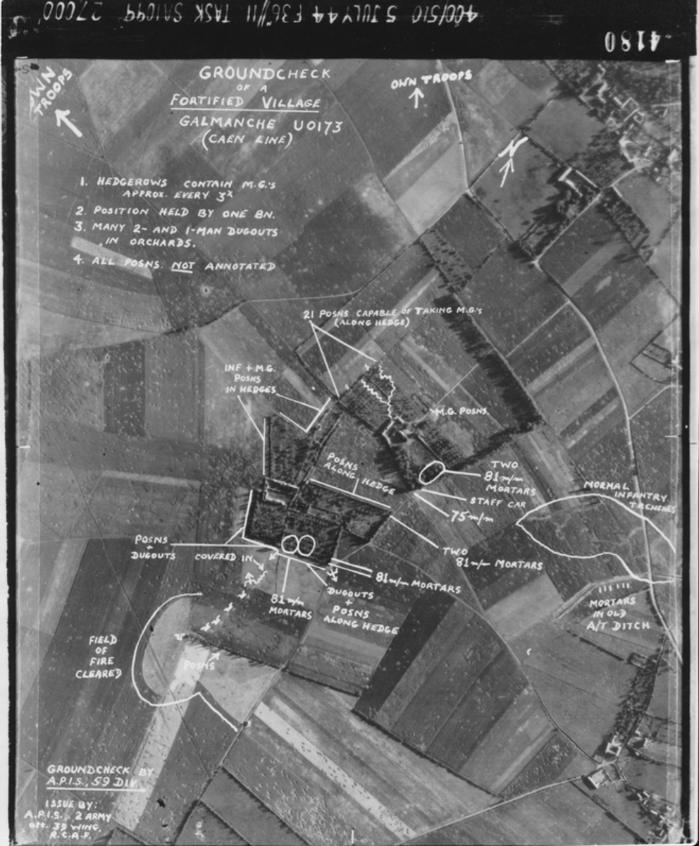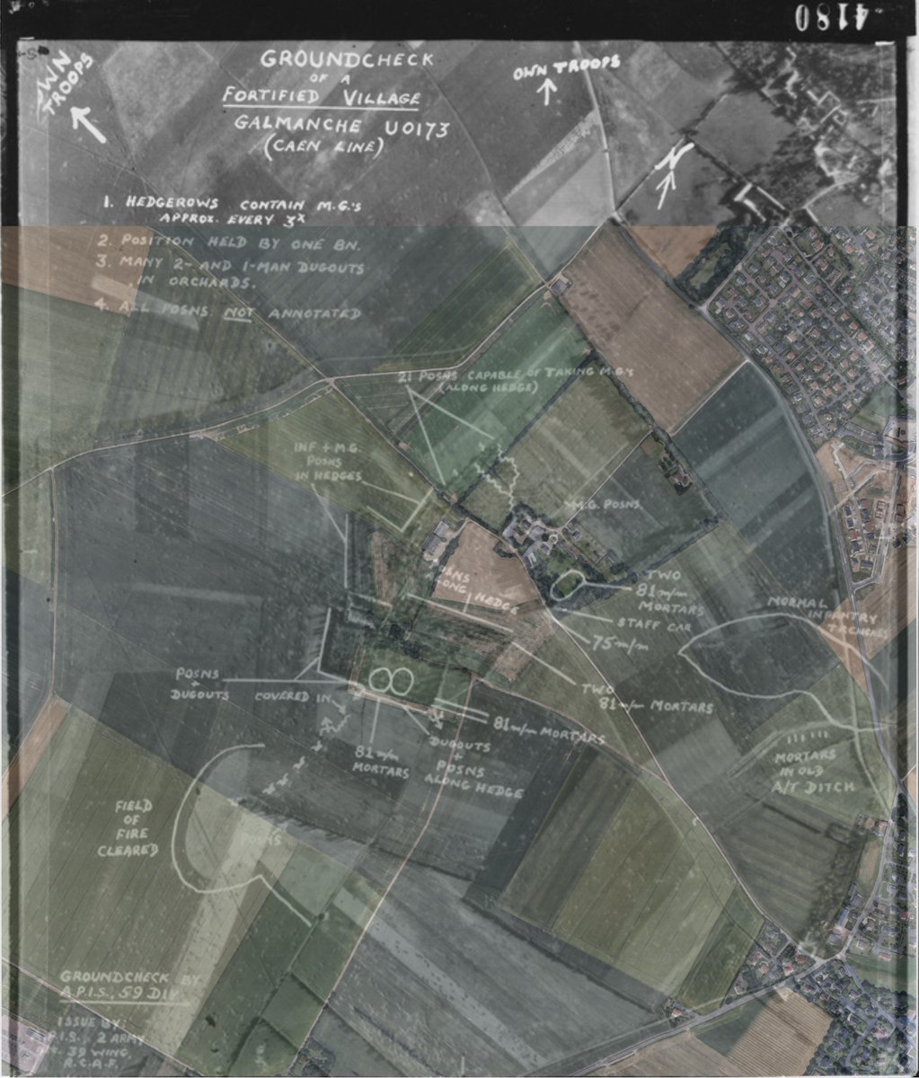 Aerial reconnaissance prior to Operation Charnwood had tried to pinpoint what would be in waiting for men of the British 59th Staffordshire Division. Galmanche would be directly assaulted from the north whilst other units flanked either side pressing for other villages.
