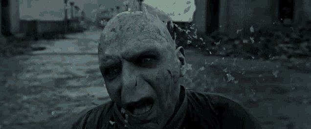 A morte de Voldemort no último livro é muito mais simples do que aparece no filme. Depois de ser atingido por um feitiço que Harry ricocheteou, o Lorde das Trevas simplesmente cai ao invés de ser despedaçado no ar.
